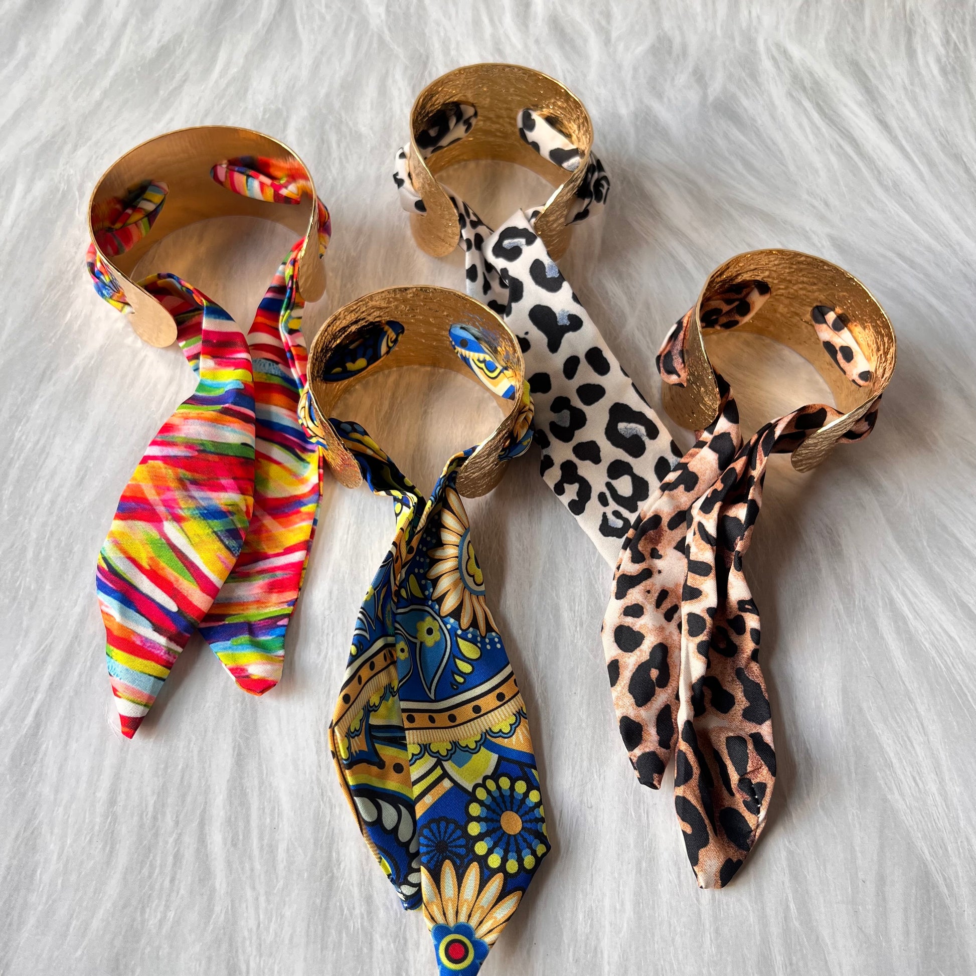 • ✨ Trendy Scarf Bracelets – A chic fusion of fabric scarves and gold-tone chain detailing.